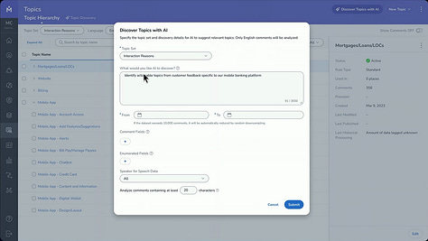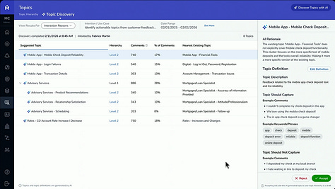 Text analytics is central to enabling this vision. Chief Product Officer Fabrice Martin explained that while AI can operate unsupervised to surface insights from massive datasets, Medallia has found that topics remain foundational: they ensure traceability by linking insights to actual experiences and enable consistent tracking over time to measure improvement. To support this, Medallia announced Smart Topic Builder, which helps identify topics, define the keywords and linguistic rules to track them, and audit their precision to validate the rules.